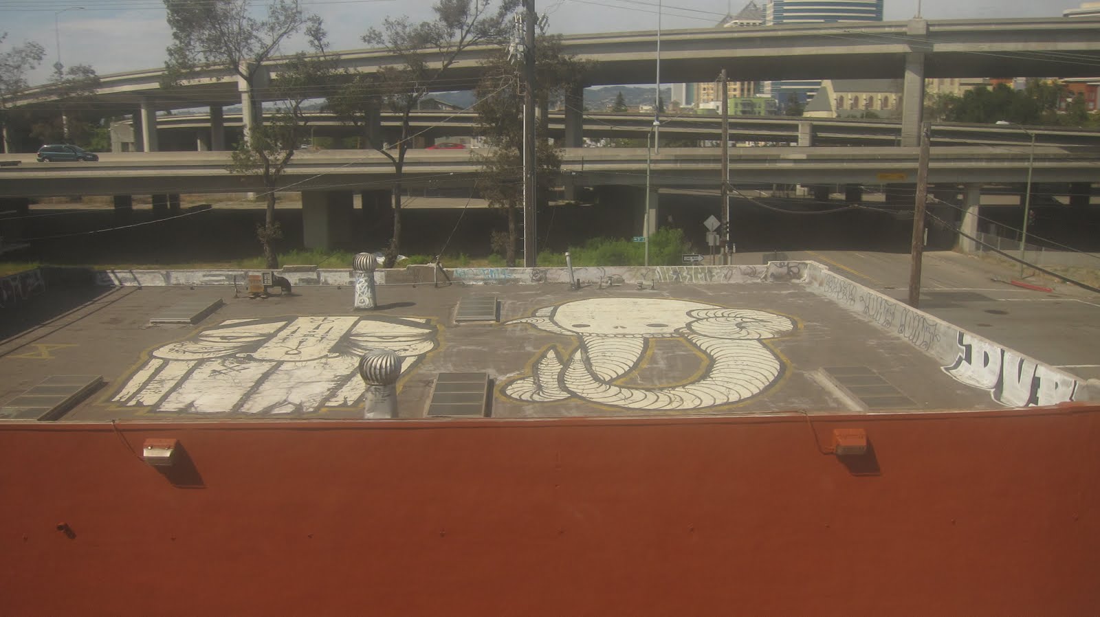 if you ever get to SF, make sure you take the small BART (bay area train) ride under the water to oakland. along the way youl see a rad roof roller by SWAMPY and a few other bits and bobs.
